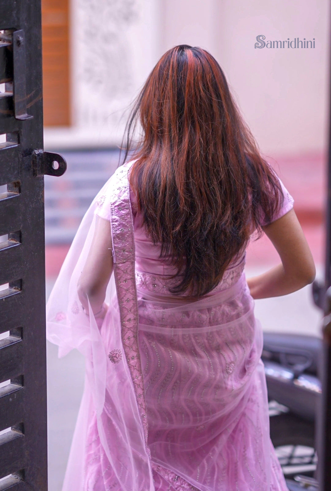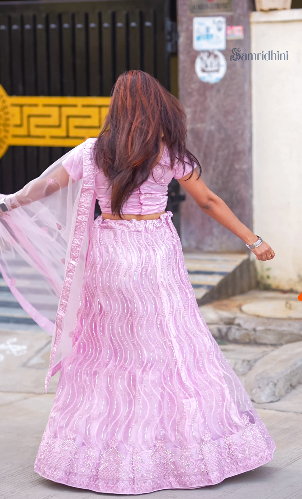 Blush Pink Net Embroidered Lehenga with Sequins Detailingš