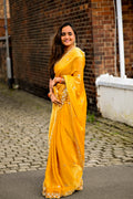 A Golden Glow🌟 Georgette Saree with Embroidered Border – Festive Elegance