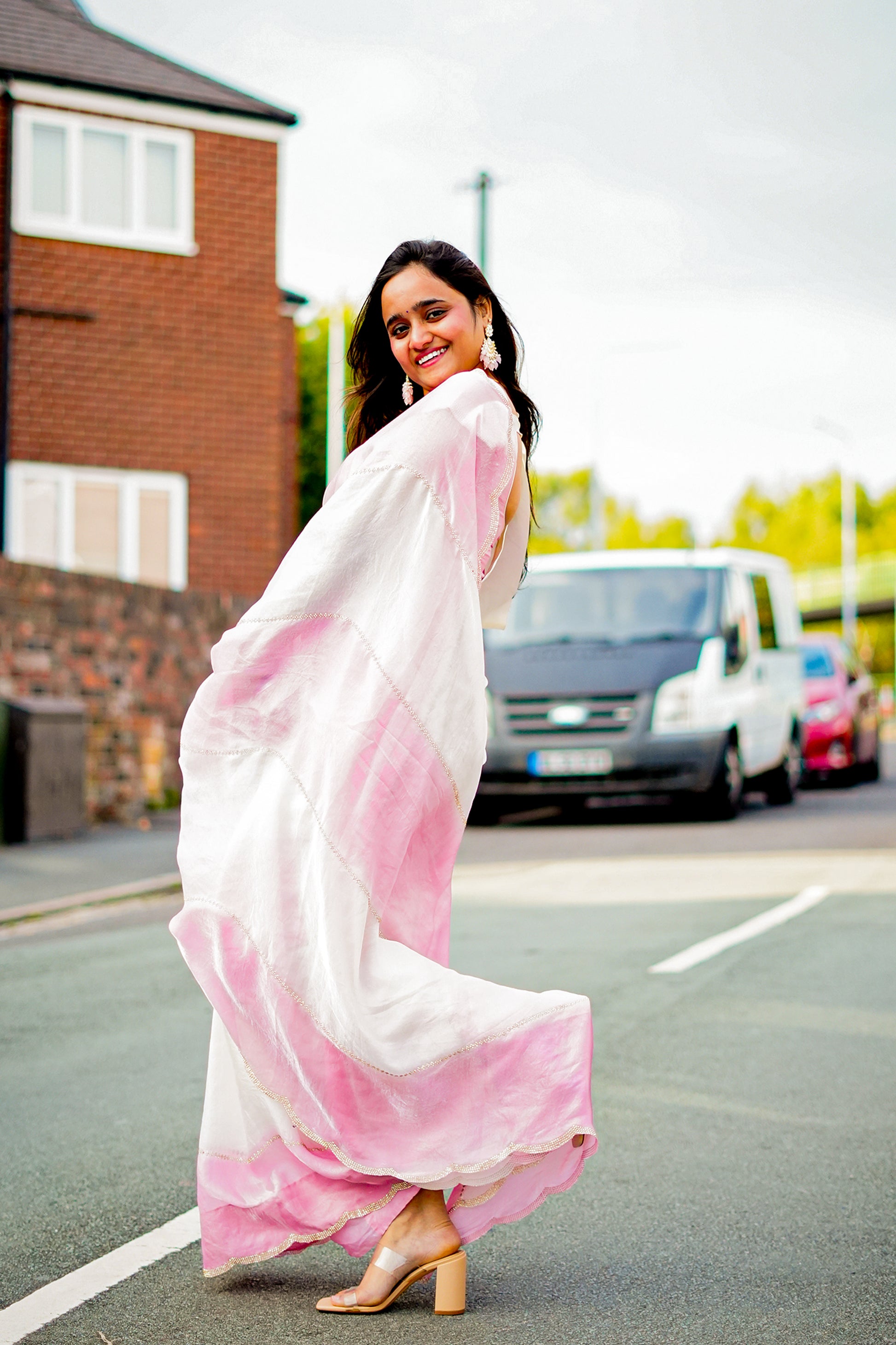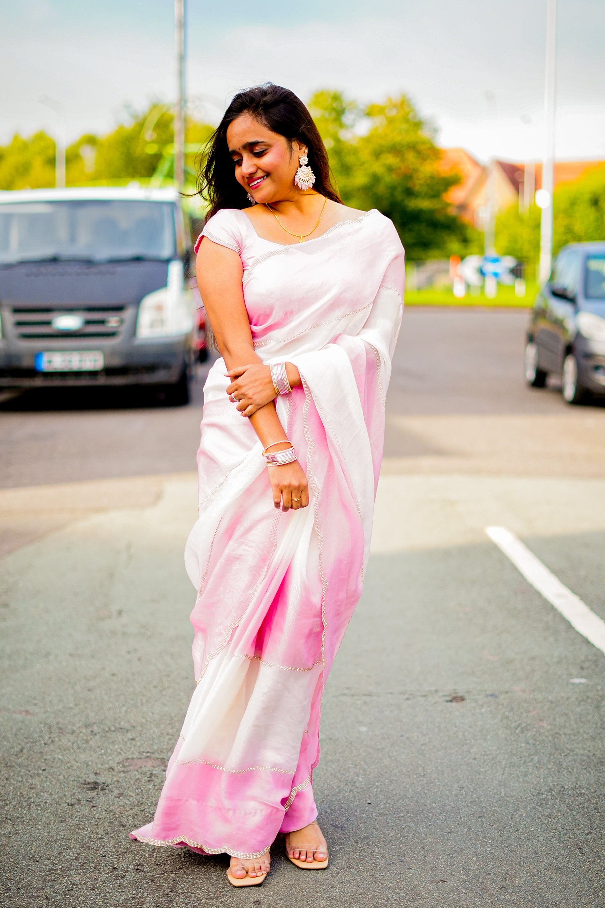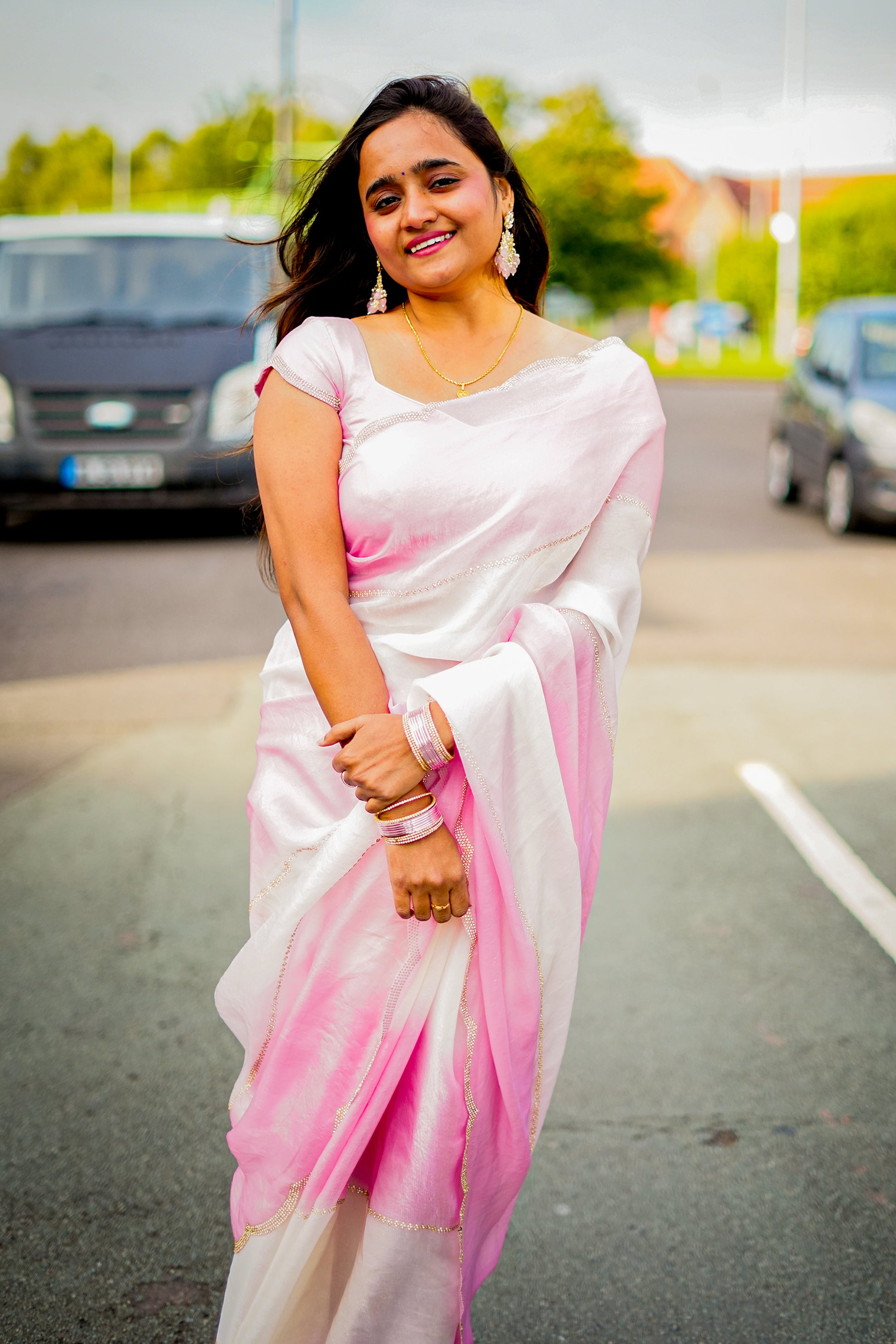 Pink Rose Petal Premium Quality Space Silk Saree💕🤍