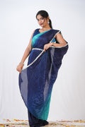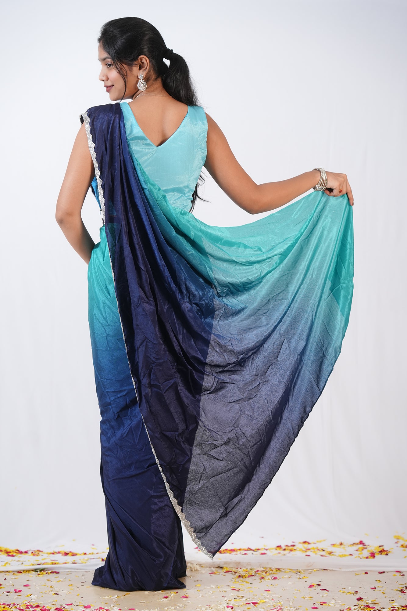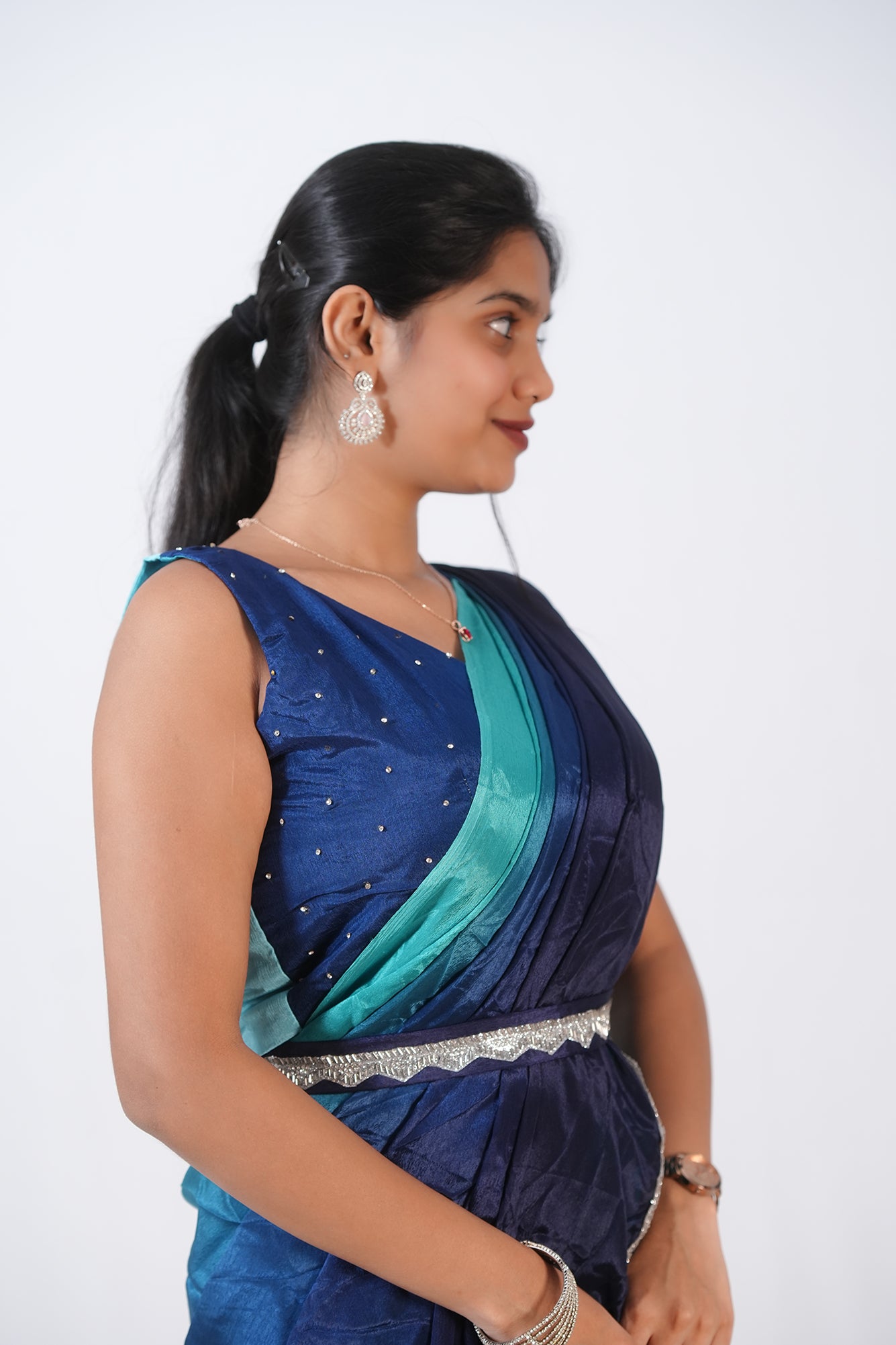 Ready-to-Wear Ocean Blue Saree (STITCHED Blouse)