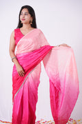 Design: The design is focused on the dramatic color shading and ease of wear. It is a "1 Minute Saree" style with pre-stitched, structured pleats designed for quick draping.