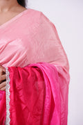 Color: Striking Ombre/Shaded effect transitioning seamlessly from a vibrant Hot Pink/Rani Pink (or Fuchsia) in the pleats to a delicate Blush Pink/Baby Pink in the pallu.