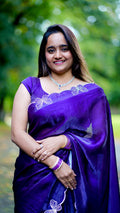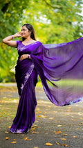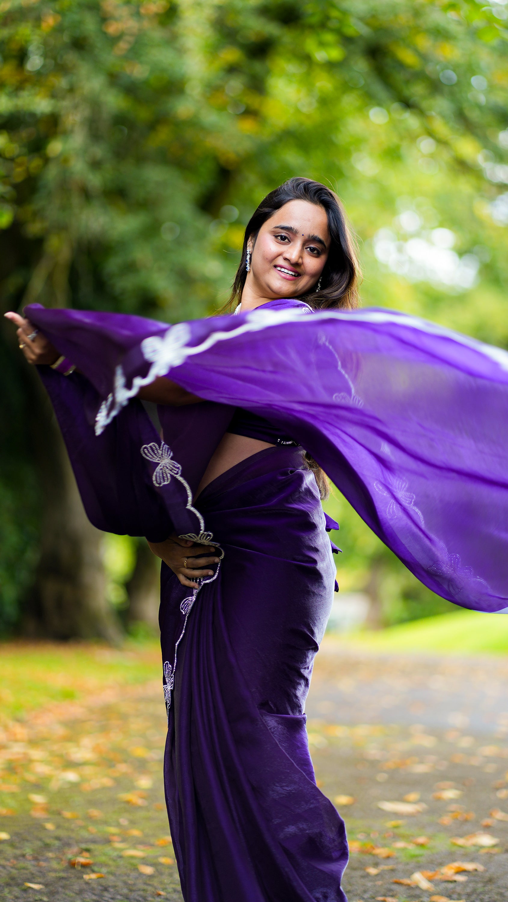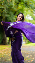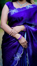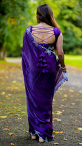 Crystal Butterfly Embroidery Purple Crinkled Saree🦋💜